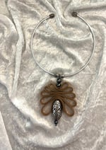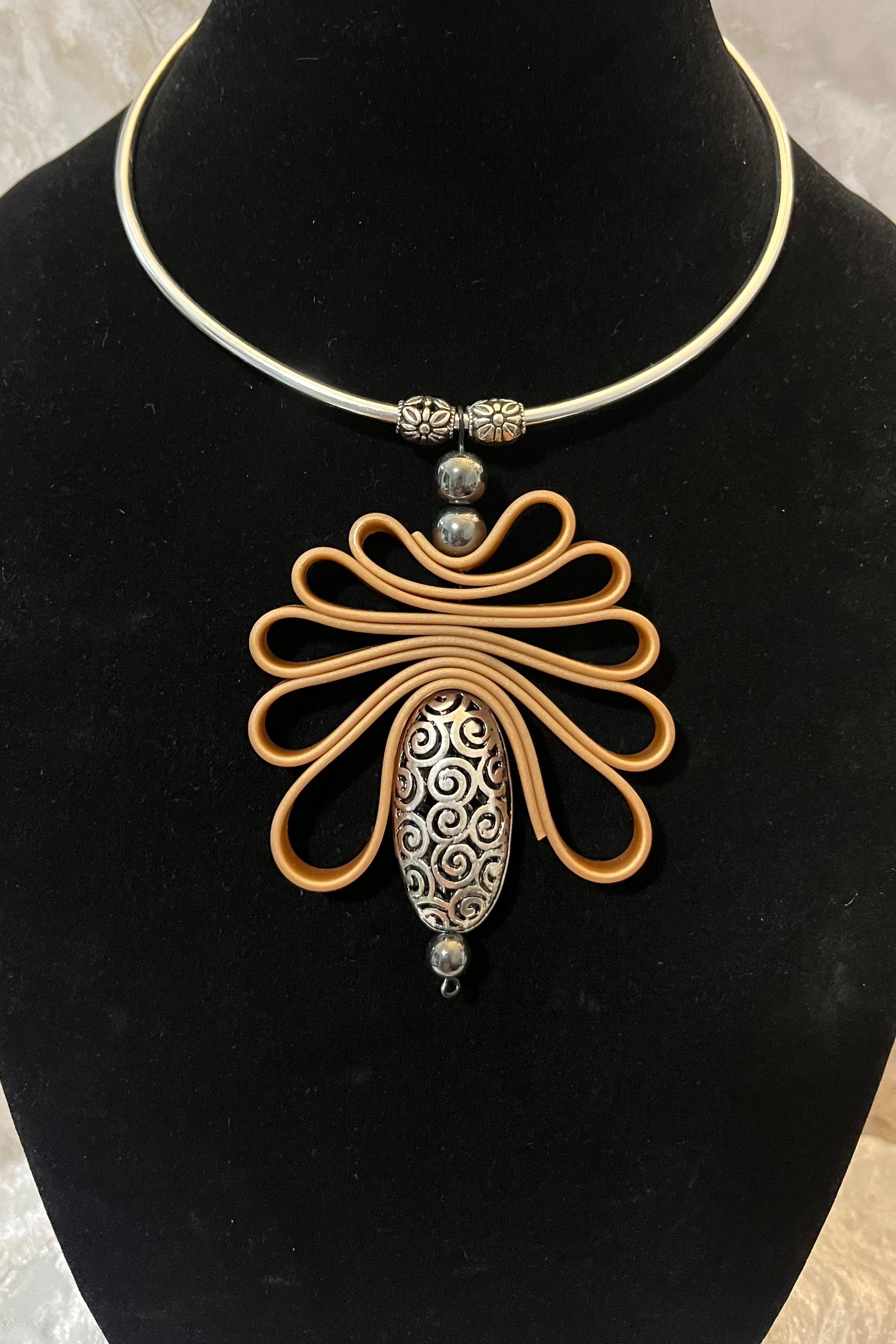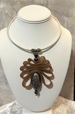 Aluminum, Amber polymer, hematite beads and large metal bead