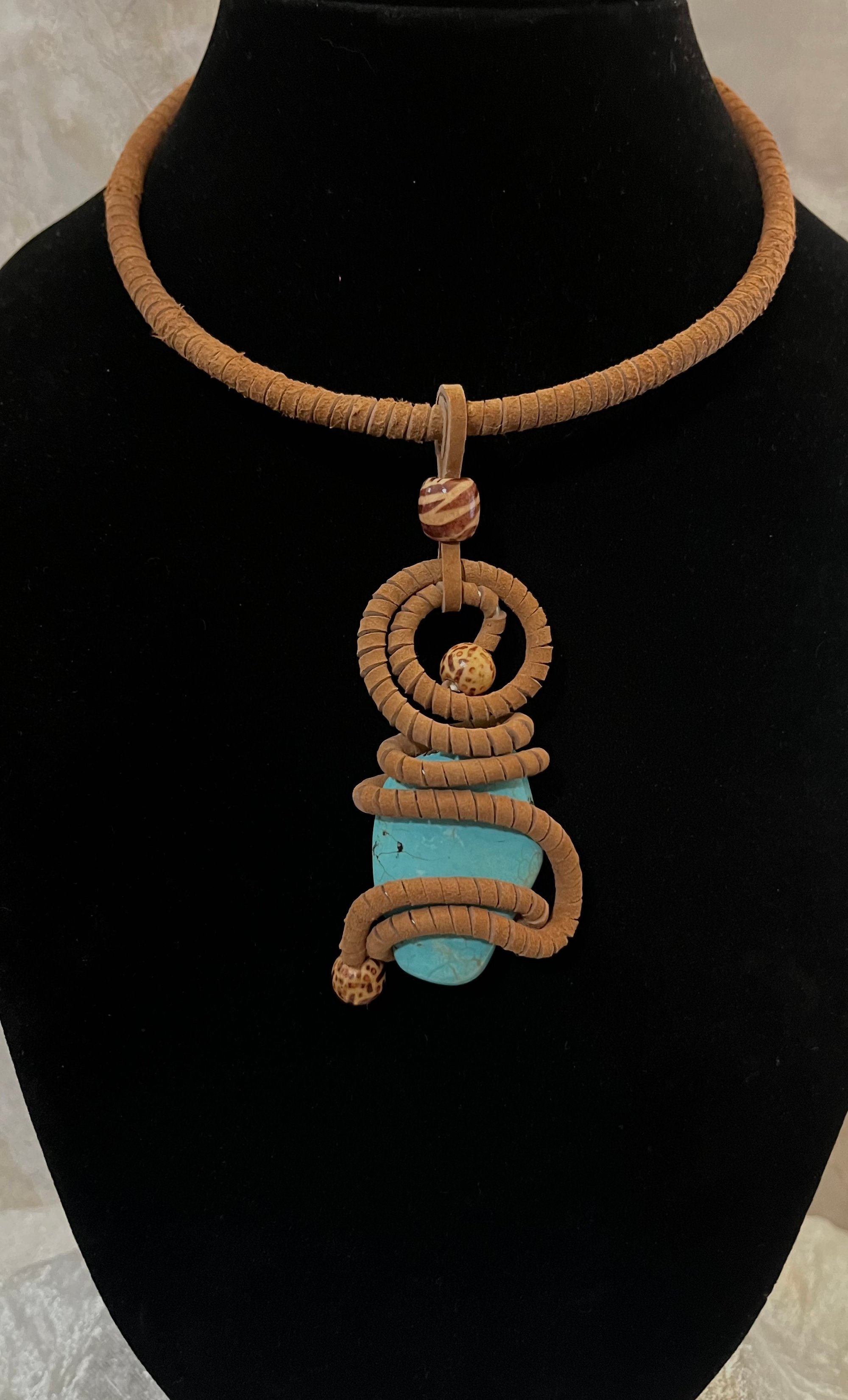Lightweight aluminum wrapped with suede lace; and with Jade stone Aluminum choker wrapped with leather lace
