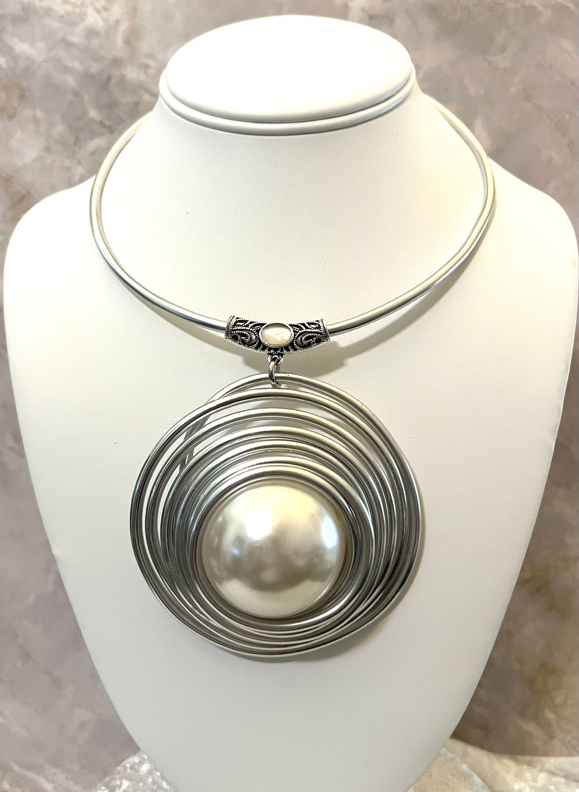 Lightweight aluminum with large faux pearl bead
