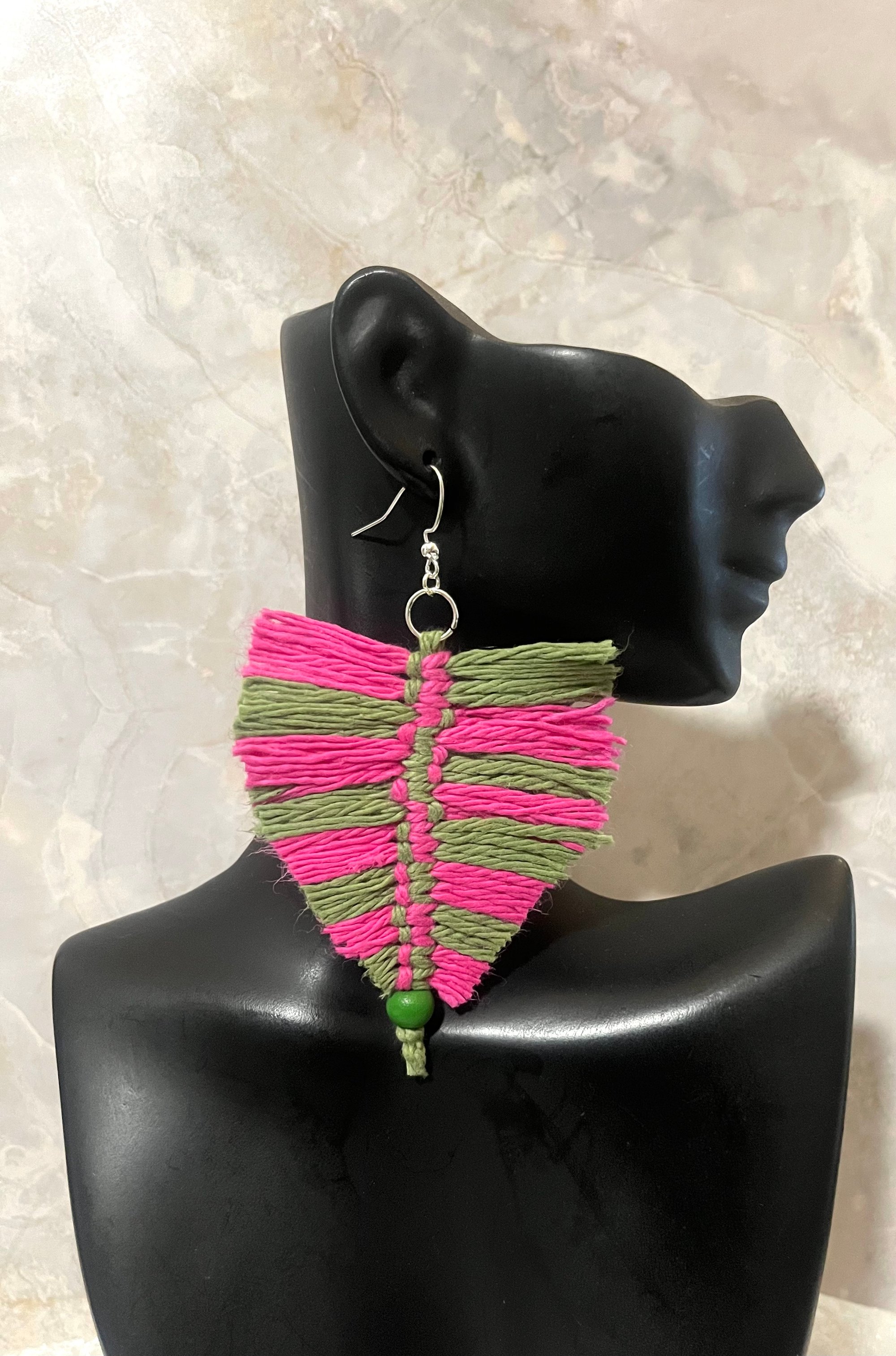 Pink & green cotton yarn with wooden beaf
