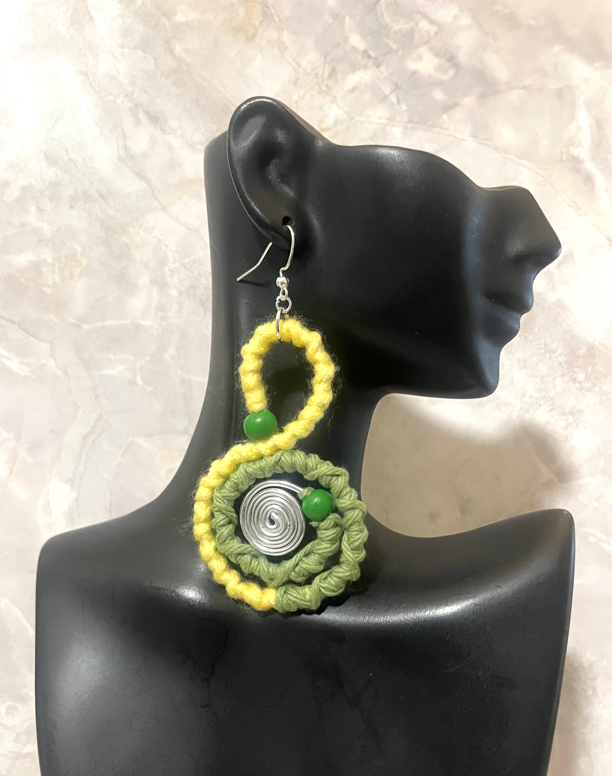 Yellow & green cotton yarn covered aluminum
