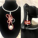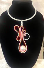 Red & white polymer with large faux pearl and glass faux pearl beads
