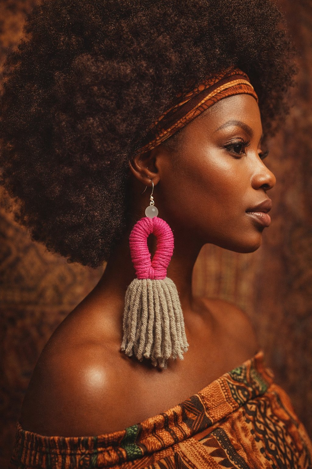 Pink & gray cotton yarn with gray glass bead