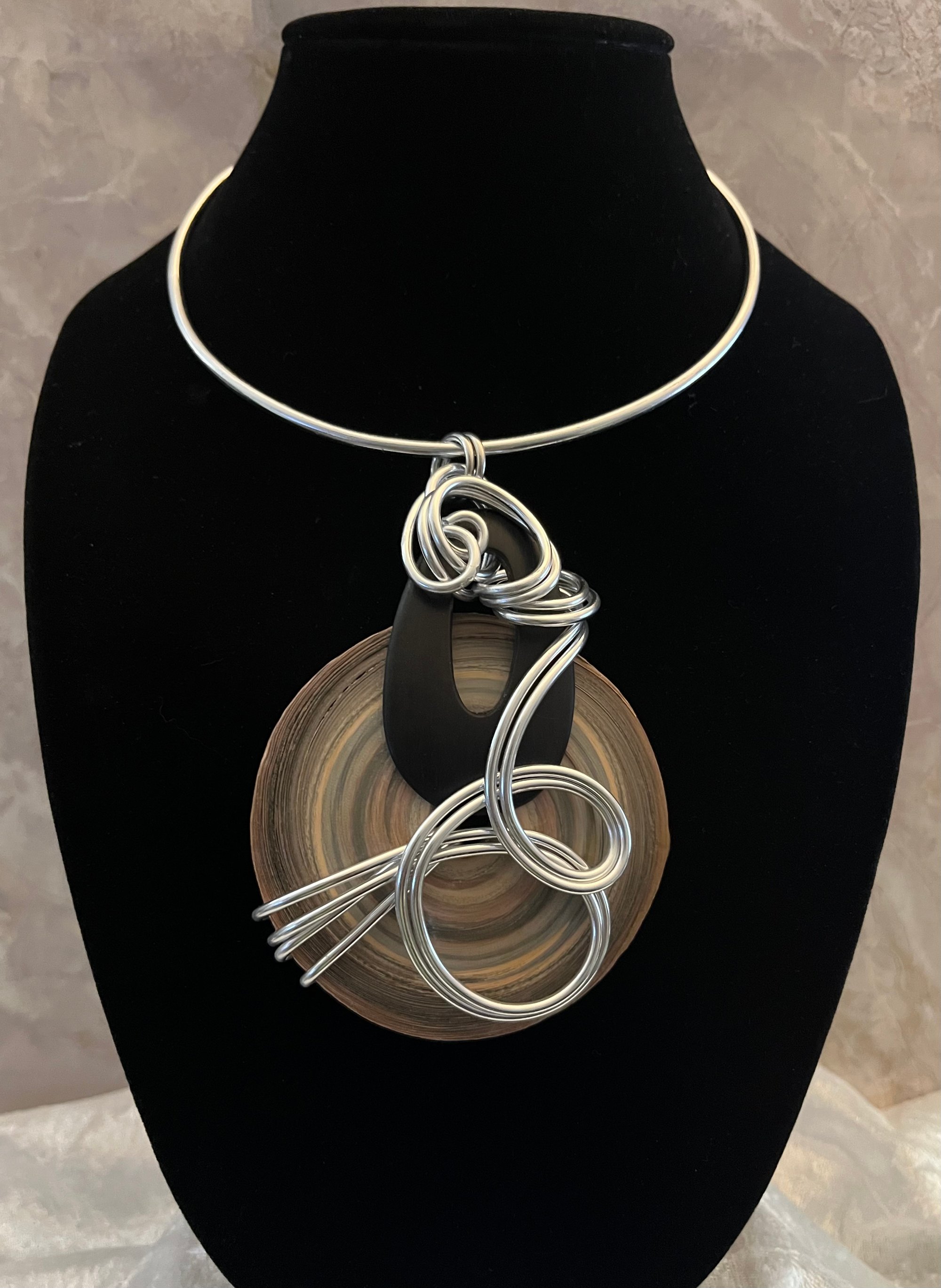Lightweight aluminum with black wooden oval disc and large paper disc