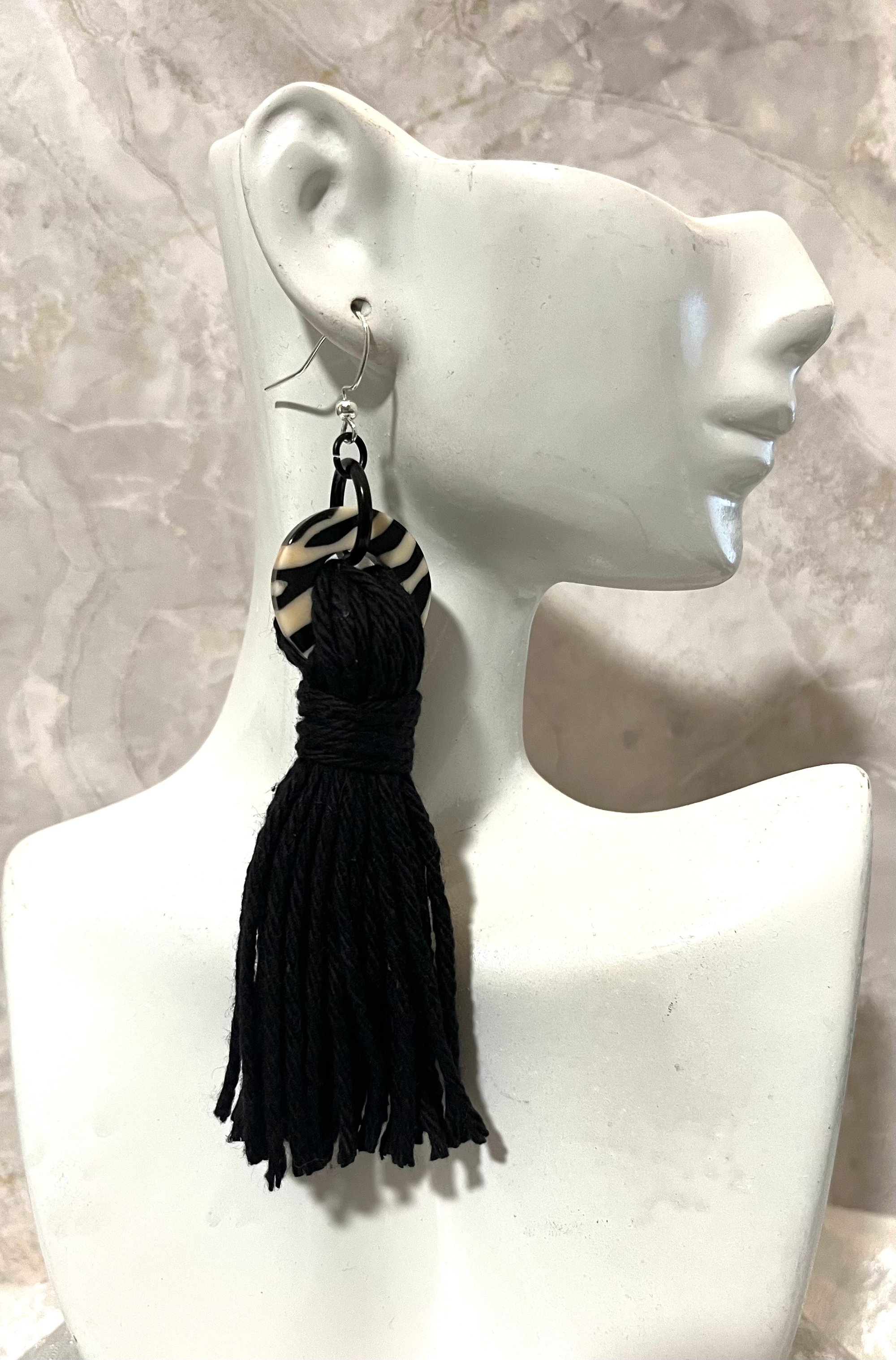 Black cotton yarn with striped round disc